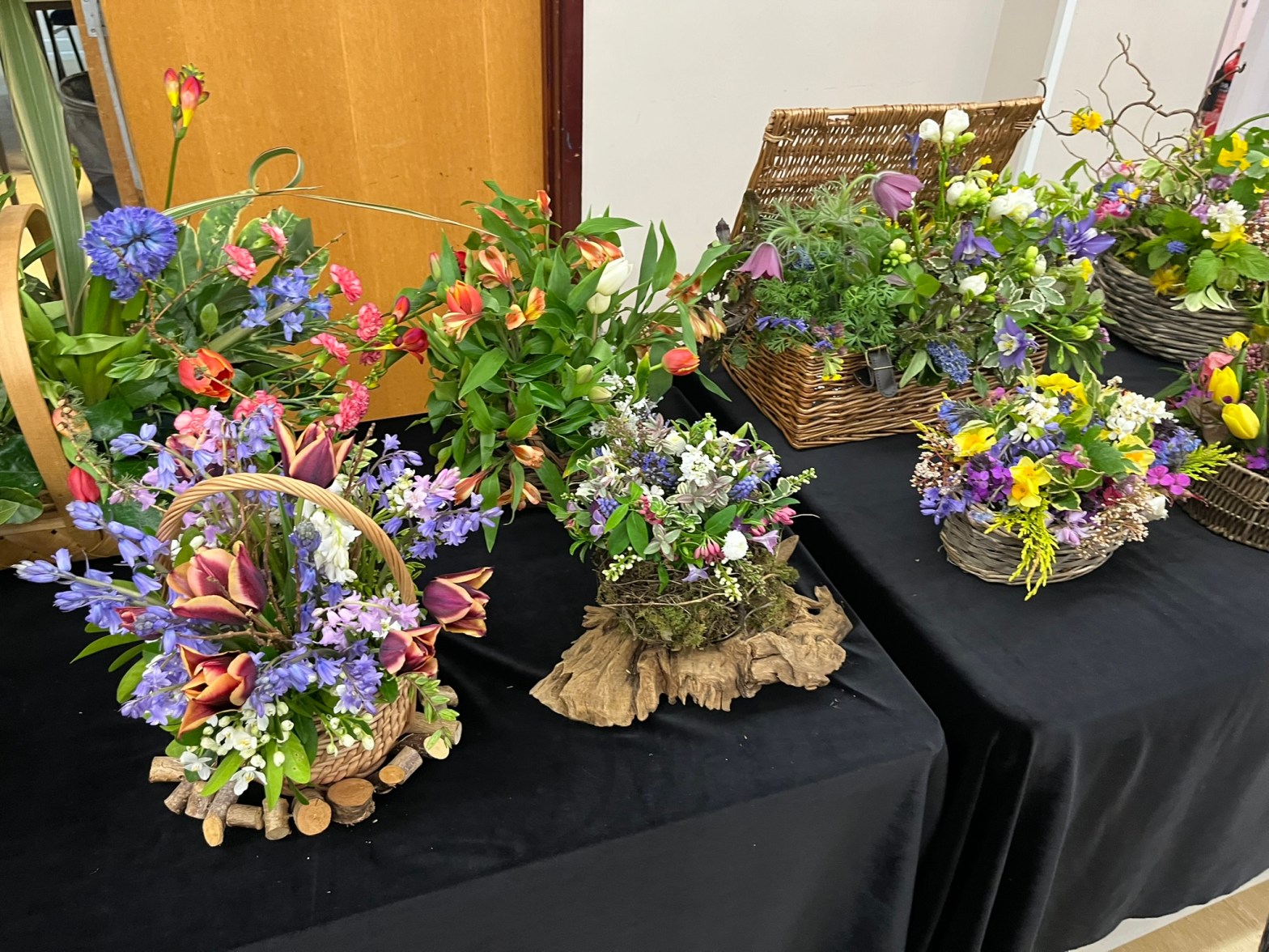 Take a look at the beautiful basket arrangements created by everyone who joined our April workshop “By the Club, For the Club – Spring Baskets.” It was wonderful to see so many unique interpretations, from delicate glass container designs to classic foam-based arrangements.